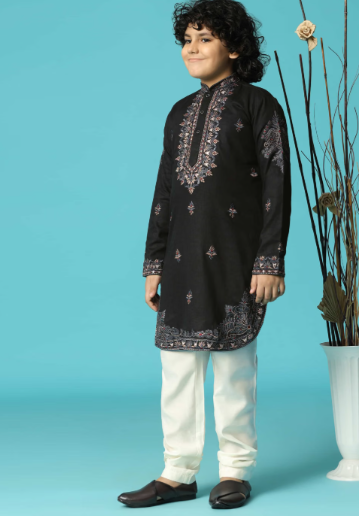 - Discover timeless elegance with our black kurta pant set for young boys.